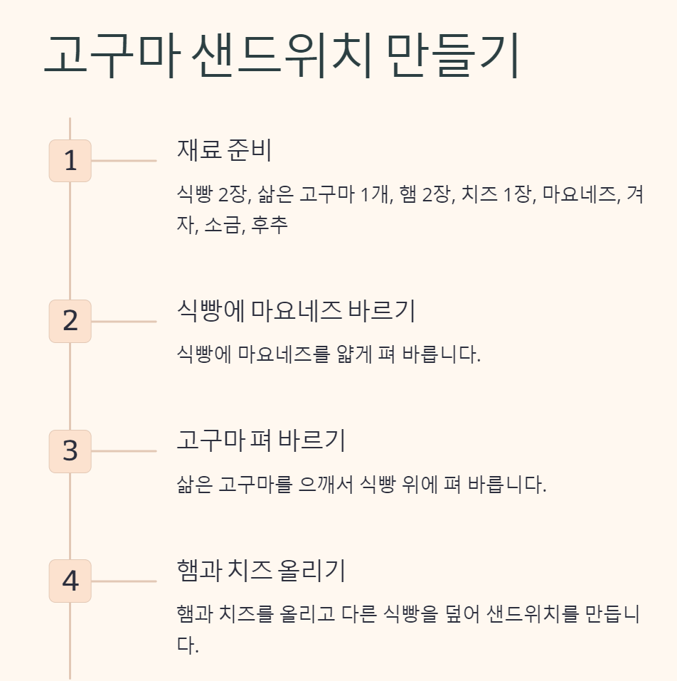 - 삶은 고구마를 으깨서 식빵 위에 펴 바른다.