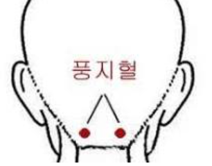 목 뒤쪽, 귀 뒤 움푹 들어간 곳에서 약 1.5cm 정도 위쪽이며 감기 기운을 해소하고 목과 어깨의 긴장을 완화하여 기침 완화에 도움을 줍니다. 엄지손가락으로 꾹꾹 눌러줍니다.